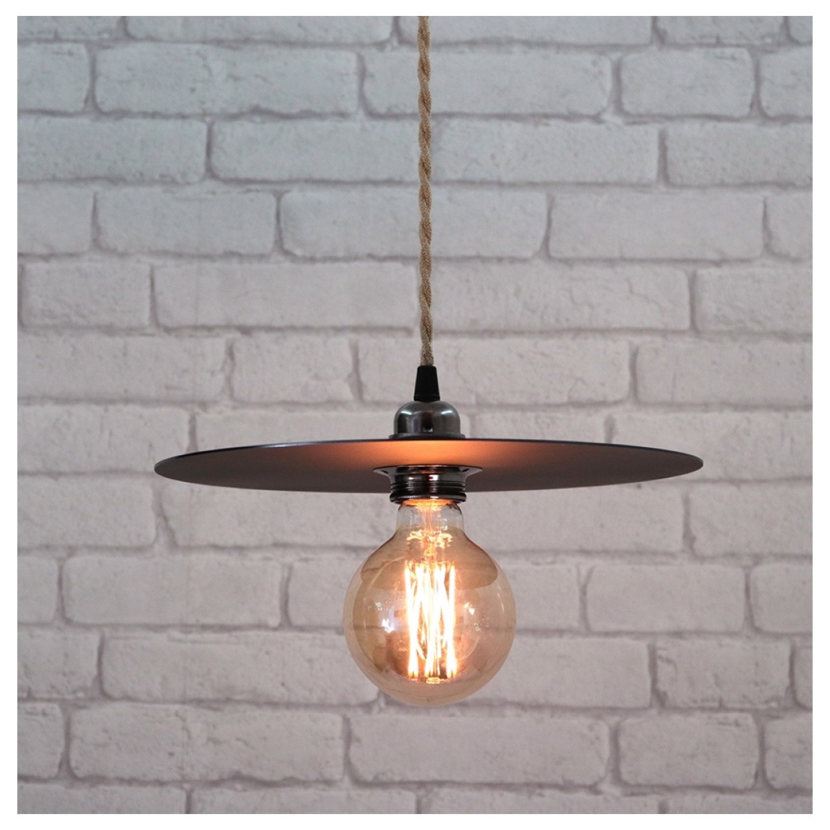 Les suspensions disque équipées d'un câble textile avec une douille et pavillon métal aspect canon de fusil créent une ambiance chaleureuse.