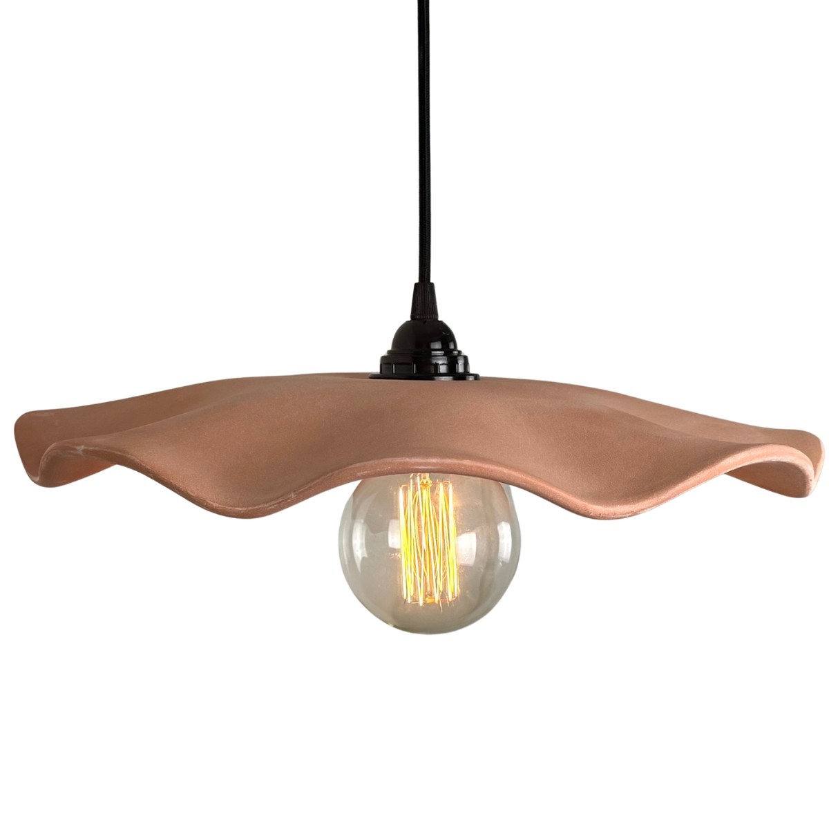 Sans artifice, elle marie subtilement une assiette en céramique ondulée et un câble textile noir, pour un rendu authentique et intemporel.